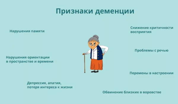 Влияние возраста на риск постинсультных нарушений обусловлено истощением когнитивных резервов мозга м?а фоне возрастных изменений в нейрональной сети. Вероятность деменции увеличивается при повторных инсультах, так после первого инсульта она составляет 10%, а после повторного – уже 35%. Симптомы зависят от локализации очага некроза (поражения) в головном мозге. Нередко течение зам?олевания ступенчатое, с периодами ухудшений и стабилизации, часто прогрессирующее.